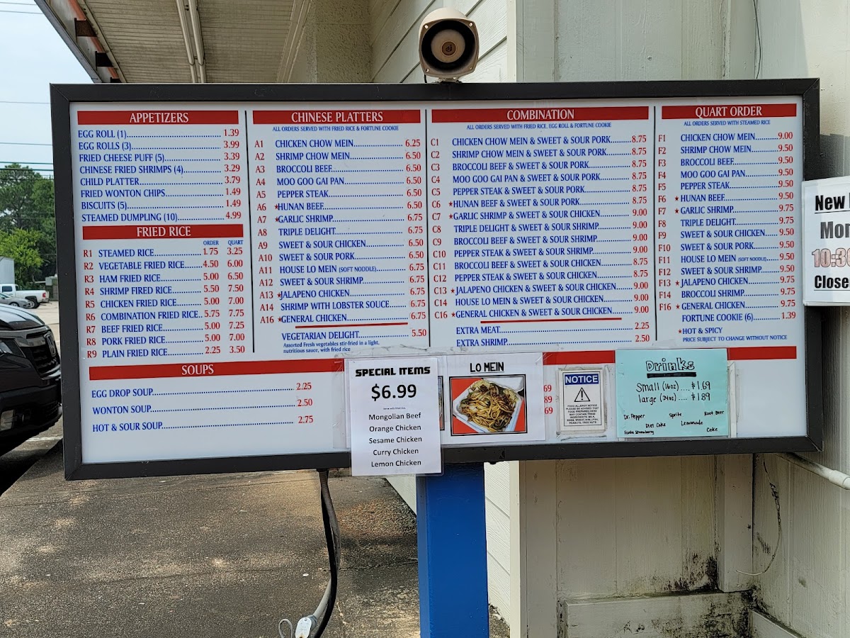 Appetizers like Child Platter, Fried Wonton Chips, Egg Rolls (3), and Steamed Dumpling (10) provide familiar starters, while the Chinese Platters section highlights heartier options such as Vegetarian Delight, A21. Mongolian Beef, A6. Hunan Beef, A8. Triple Delight, and A22. Curry Chicken. Rounded out by straightforward drinks like Ice Tea and Soft Drink (Can), the menu ultimately reflects a dependable, no-frills dining experience-one that focuses on classic flavors, satisfying portions, and options that appeal to both regulars and first-time visitors alike.